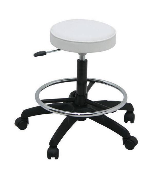 Cult Comfort Beauty stool,structure in silver color coated metal and seat upholstered in white skai