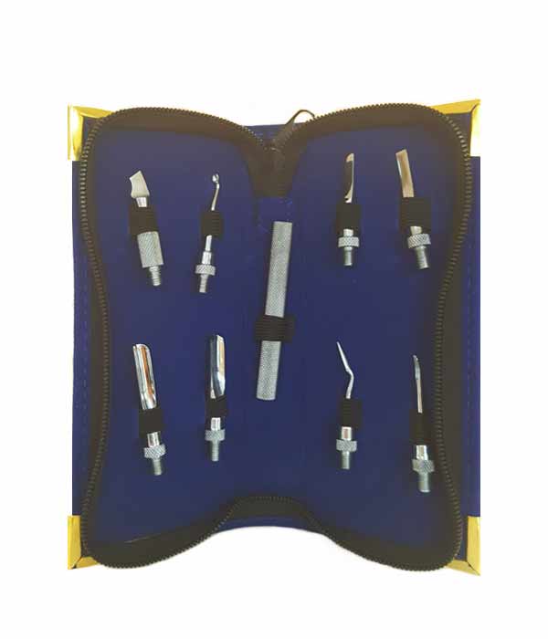 Handle stainless steel with double interchangeable tips for manicure and pedicure.