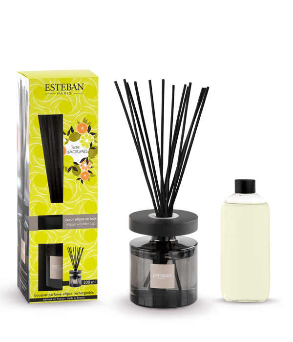 Terre d´Agrumes, un profumo agrumato legnoso, è un perfetto equilibrio tra legno e agrumi. Rinfrescante, questo bouquet di prelibatezze dai sapori siciliani porterà tono e leggerezza ai tuoi interni.