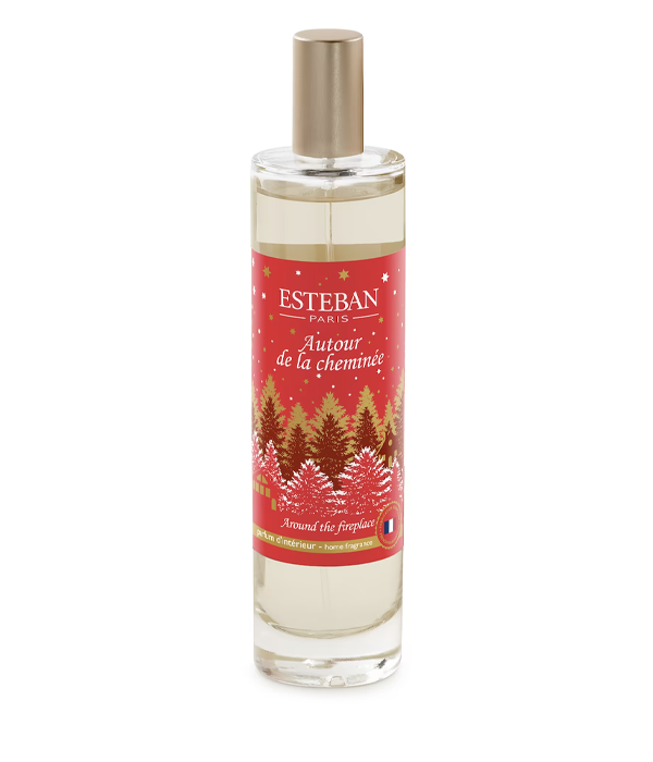 Vaporizzatore spray profumato 75ml Autour De La Cheminee di Esteban Paris. È l'eleganza dei legni caldi e il calore del cuoio che si ravvivano attorno a un fuoco scoppiettante.