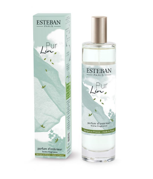 Vaporizzatore spray profumato 75 ml Pur Lin di Esteban Paris. Un soffio leggero… e il velo di lino ondeggia su un cielo di soffici nuvole. La sua fragranza naturale ha una freschezza senza fine che invita alla calma e alla serenità. La casa diventa quindi un rifugio di benessere.