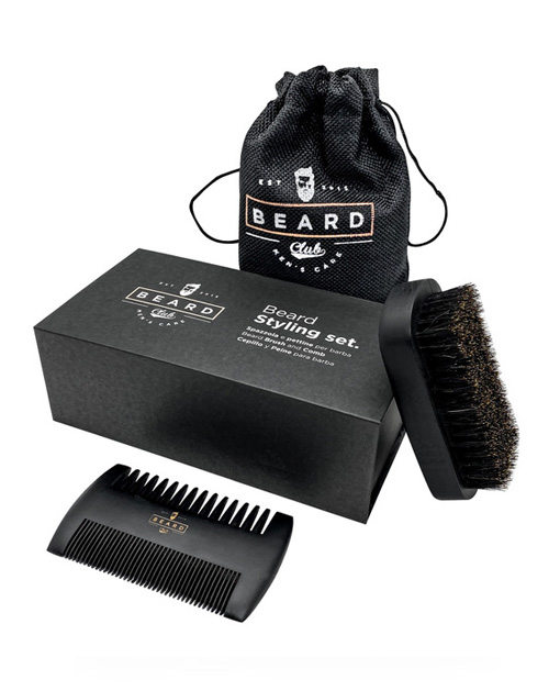 Professional set consisting of a beard brush and comb with boar bristles. Case included.