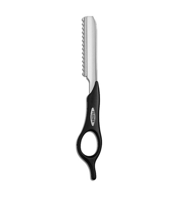 Rasoio Feather, manico con anello finale ottimo per i professionisti per raggiungere un risultato di sfilatura invidiabile.Lama intercambiabile con protezione.