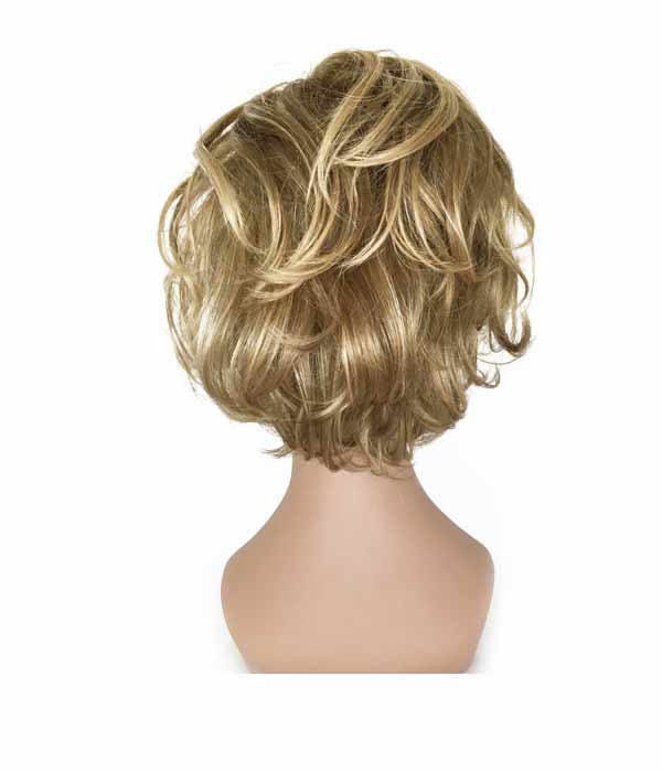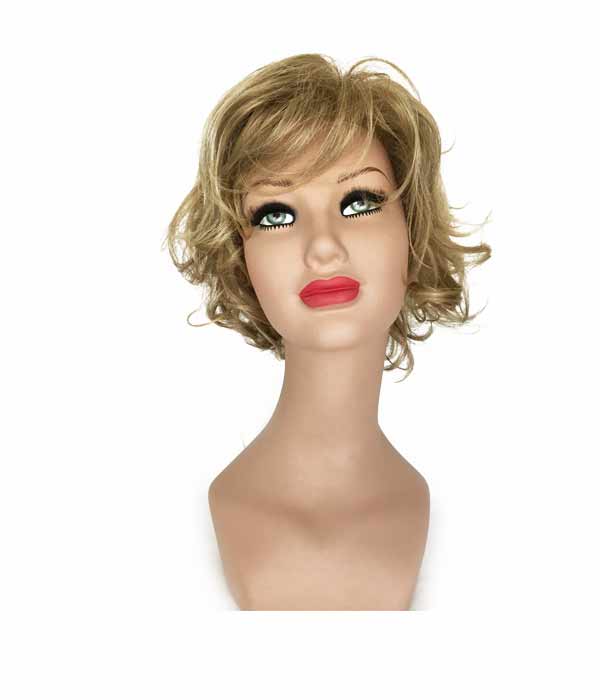 Parrucca con capelli in fibra sintetica.