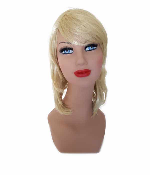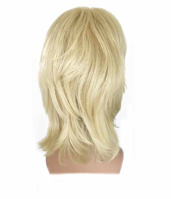 Parrucca in fibra sintetica modello Benny colore 613. Lavorazione a macchina con elastici dentro la calotta per regolare la misura.