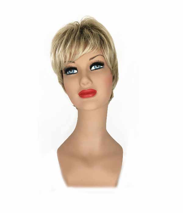 Parrucca sintetica modello Club G. Colore 22/24. Lavorazione a macchina con elastici dentro la calotta per regolare la misura.