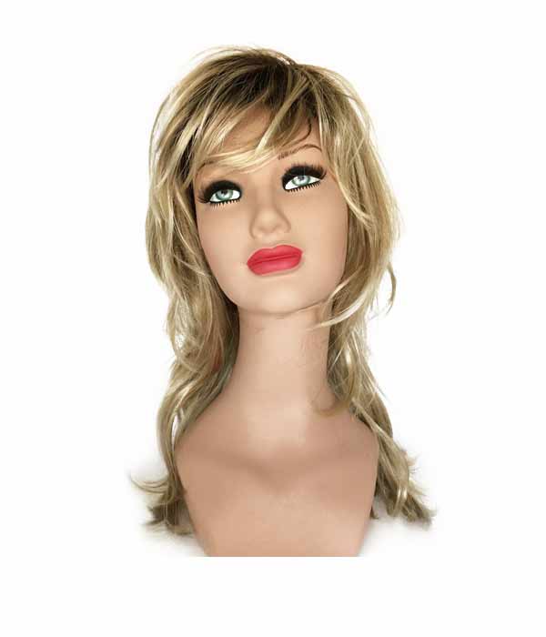 Parrucca con capelli in fibra sintetica colore LR14/88H+8. Lavorazione a macchina. Con elastici (all'interno della parrucca) per regolare la misura. Taglia unica.