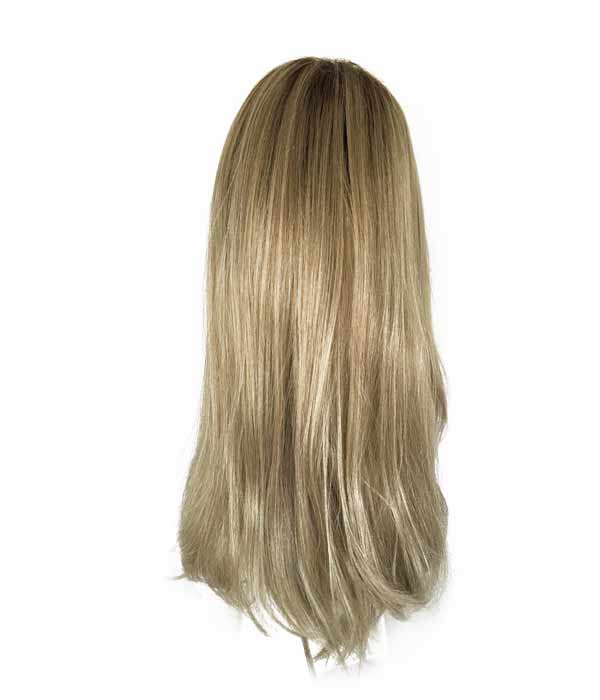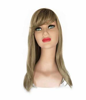 Parrucca con capelli in fibra sintetica, colore L14/24+8. Lavorazione a macchina. Con elastici (all'interno della parrucca) per regolare la misura. Taglia unica.