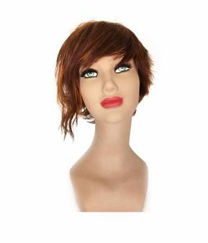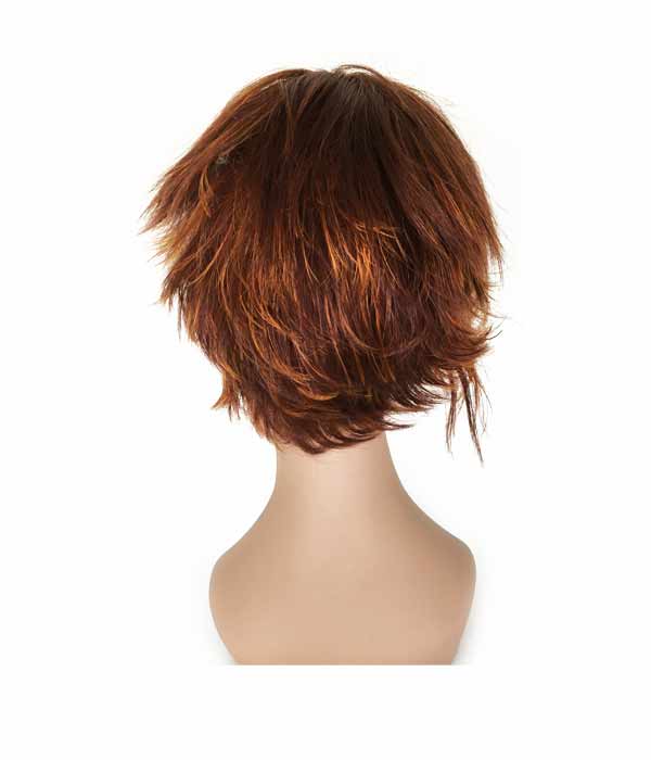 Parrucca con capelli in fibra sintetica. Lavorazione a macchina. Con elastici (all'interno della parrucca) per regolare la misura.