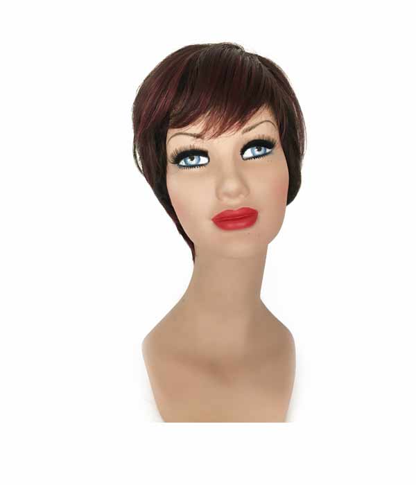 Parrucca con capelli in fibra sintetica colore Dark Beaujoulais. Lavorazione a macchina. Con elastici (all'interno della parrucca) per regolare la misura. Taglia unica.