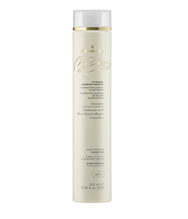 Shampoo riflessante ideale per biondi freddi. Grazie alla presenza di pigmenti, enfatizza i riflessi cenere, cenere-irisé, irisé. Deterge delicatamente, rimpolpando la struttura capillare e impreziosendo i riflessi.