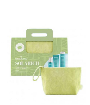 Il Kit Medavita Solarich contiene lo shampoo Medavita Shampoo Doccia Ristrutturante Doposole da 400 ml, uno olio in crema Medavita Solarich Olio In Crema Miracoloso 10 in 1 da 150 ml, Medavita Maschera Intensiva Ristrutturante Doposole 150 ml e una Solarich Summer Bag.
