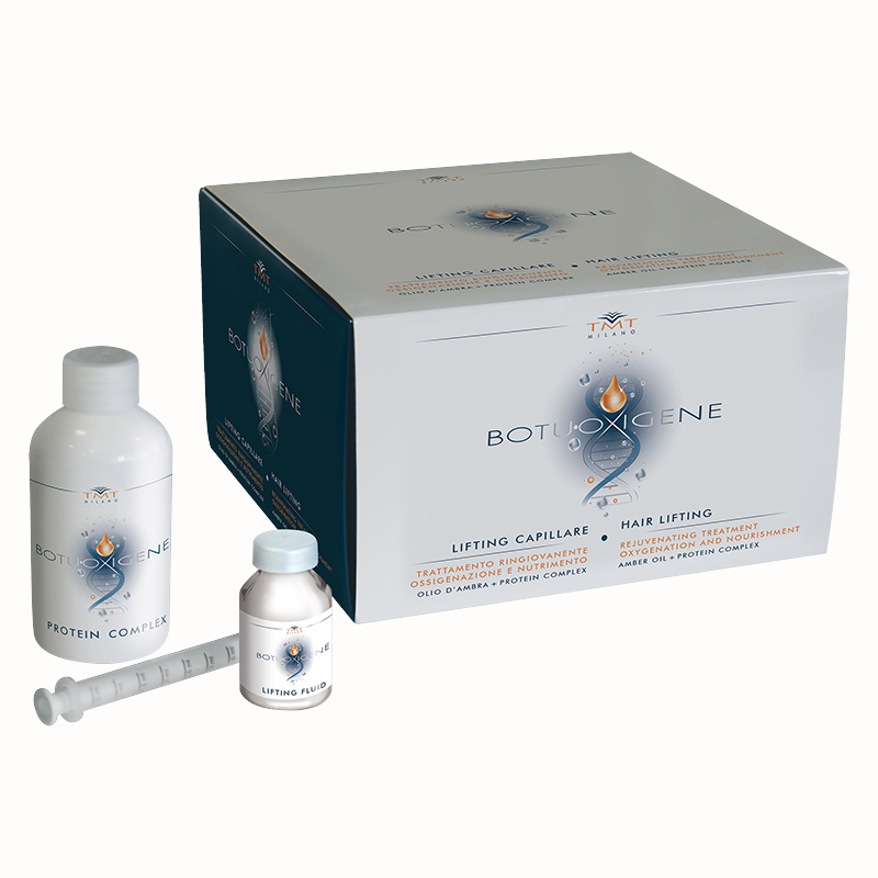 Trattamento lifting per capelli ad effetto botulino: la sua formula innovativa favorisce l’ossigenazione unendo le straordinarie proprietà dell’Olio d’Ambra all’azione nutriente e ristrutturante delle proteine di Cheratina e Collagene. BOTU-OXIGENE agisce come riempimento della struttura inaridita dello stelo, unendosi ad esso per una ricostruzione intensiva e profonda.