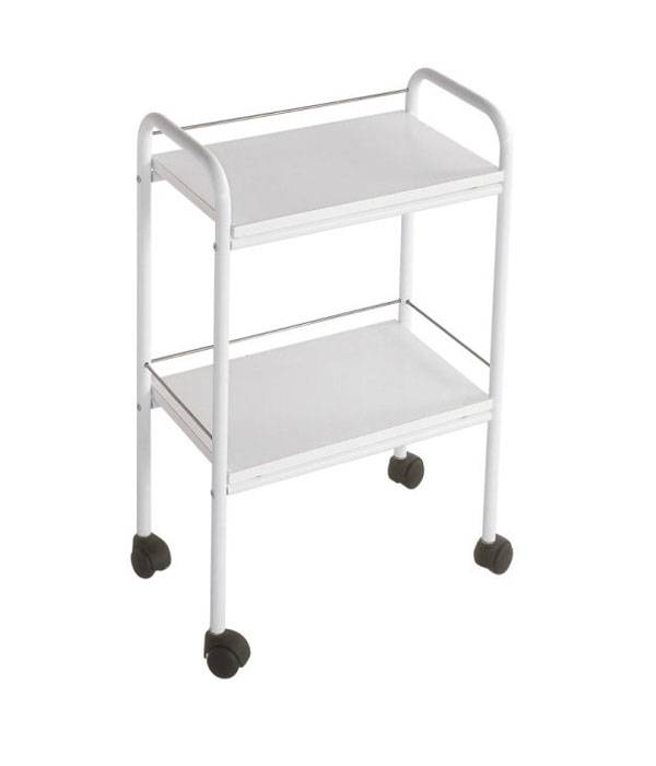 Carrello Kargo professionale adatto per centri estetici e SPA a due piani in laminato bianco con struttura metallo bianco.