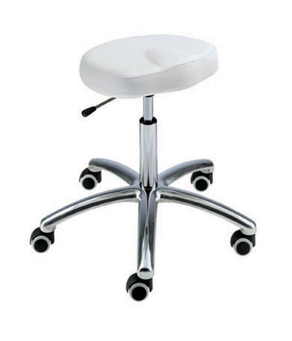 Beauty Derby 1 Sgabello Da Taglio,struttura in metallo colore argento e sedile skai bianco.