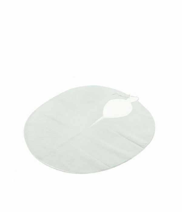 Bavaglio Monouso in TNT (tessuto non tessuto) per trattamenti estetici o pulizia viso. Colore Bianco. Confezione da 50 pezzi.