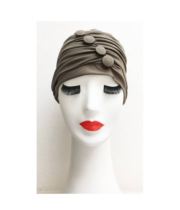 Turban Mony Jersey stretch cotton and fake buttons on the front. Very handy allows coverage of the entire head, leaving the skin breathe.