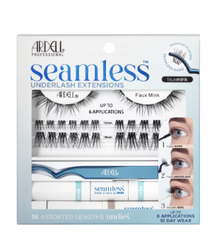 Apply Ardell – Seamless Tuft Eyelash Kit on clean eyelashes without mascara. Curl them with an eyelash curler for enhanced results. Apply Bond to the base of the lashes under the lash line without covering the entire lash and working in sections. Then apply the tufts on the glue without touching the skin, remaining on the base of the eyelashes. Use the applicator to help you in this phase and press them together for better anchoring. Then use a layer of Seal to remove Bond residues.