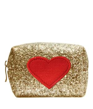 Un piccolo beauty per portare il make-up sempre con te, o un porta monete eccentrico ed effetto, usalo come vuoi! Tempesta di glitter color oro e un cuore rosso fiammante.