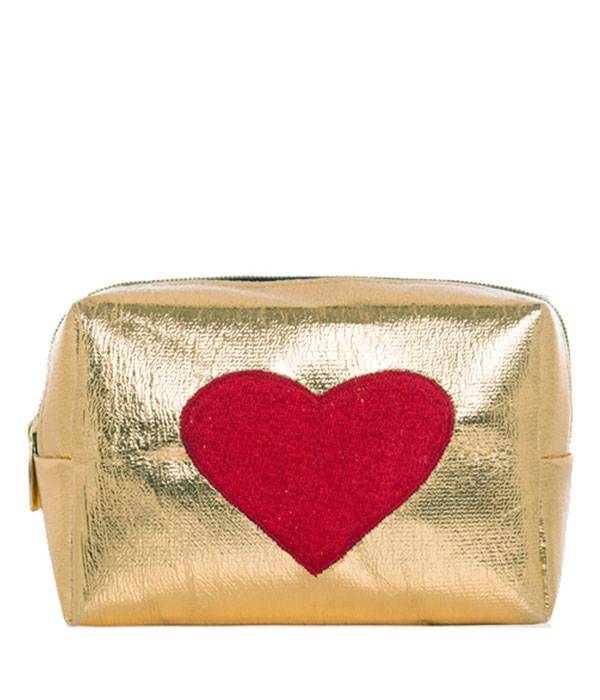 Un piccolo beauty per portare il make-up sempre con te ! Delicato color oro e un cuore rosso fiammante.