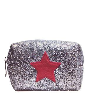 Un piccolo beauty per portare il make-up sempre con te, o un porta monete eccentrico ed effetto, usalo come vuoi! Tempesta di glitter color argento e un cuore rosso fiammante.