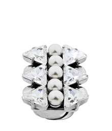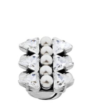 Anello regolabile nel color argento , impreziosito da una delicata fila di perline di metallo, cristalli Swarovski e punta impostato per un gioiello in stile allungato e moderno . Lega: argento Peso : 1 g .