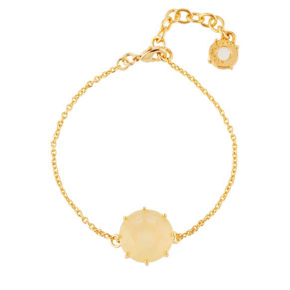 Questo gioiello è composto da una mano rotonda in pietra citrina gialla scolpita nella più pura tradizione di Nereides Paris e una catena in ottone dorato con 14 carati in oro zecchino.