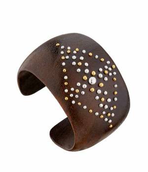 Legno lavorato e ornato da borchie in oro e argento, fili di metallo intrecciati a mano per uno stile Pure ed Etnico.