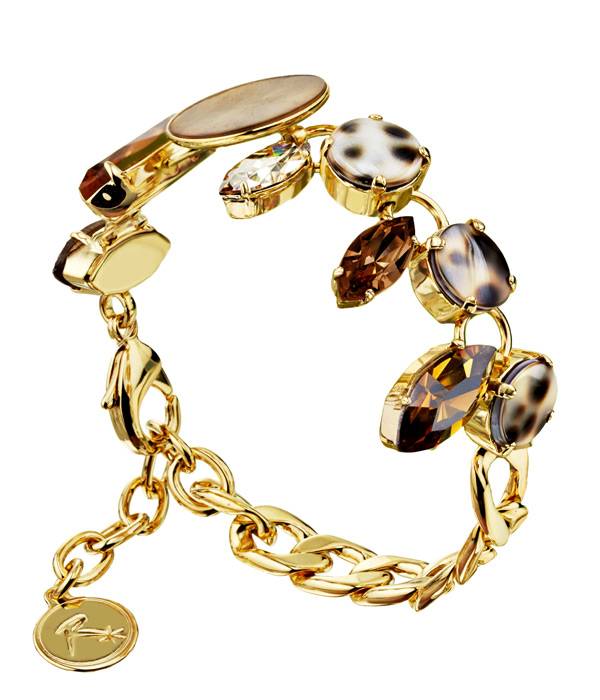 Un'interpretazione basta sul leopardo e sul manto caratteristico di questo felino maestoso ed elegante. Un tema sensuale e rock con cristalli e pietre di vetro dai toni marroni, bronzo e oro, disseminano di piccole macchie di madreperla che riprendono lo stampato leopardo per un effetto camouflage nel cuore della giungla urbana.