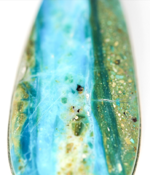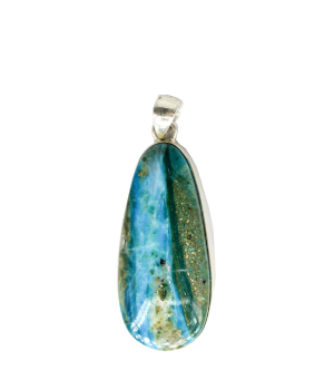 Il Ciondolo in Shattuckite su Base Argento è una fusione straordinaria di quattro pietre preziose affascinanti: turchese, crisocolla, malachite e azzurrite. Questa creazione unica celebra la bellezza e la diversità della natura, combinando le sfumature uniche di ciascuna pietra per formare un capolavoro cromatico.