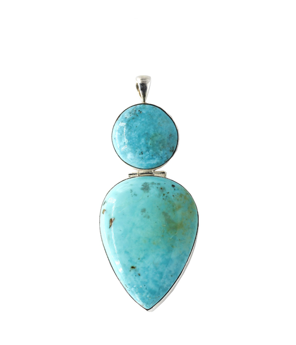 Porta con te questo ciondolo come un talismano di calma e potenza, unendo la tradizione della pietra turchese all'eleganza senza tempo dell'argento.