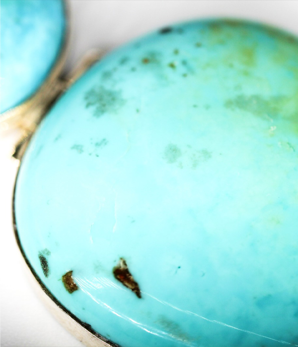 Ogni dettaglio di questa creazione è realizzato con precisione, evidenziando la bellezza unica della pietra turchese e la maestria artigianale. Questo gioiello diventa così un portatore di storie, con la pietra che racconta la sua antica saggezza su una base d'argento che ne esalta la naturale magnificenza.
