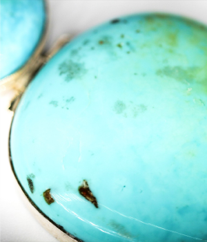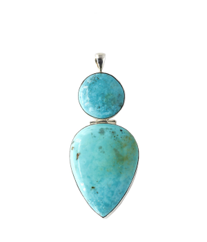 Elegante e raffinato, questo ciondolo presenta un turchese incastonato con maestria su una base di argento finemente lavorata. L'argento, con la sua lucentezza discreta, agisce come uno sfondo perfetto, mettendo in risalto la vivacità e l'individualità del turchese.