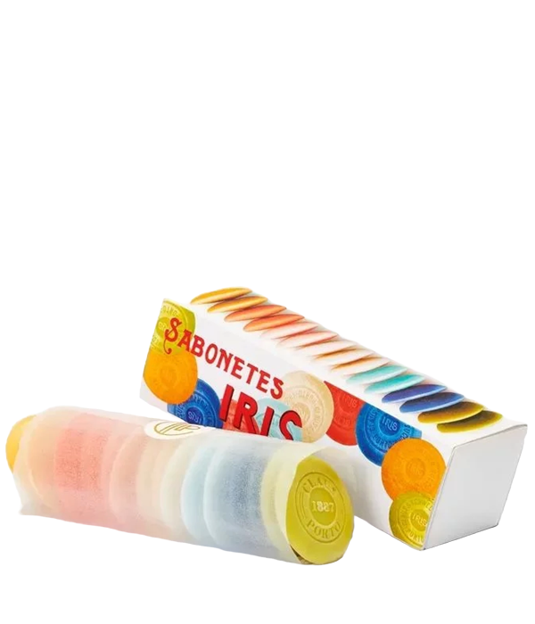 Confezione Deco Saponi Iris 15x10g di Claus Porto , questa confezione di saponi per gli ospiti somigliano molto ad una collezione di gioielli colorati o a dolci macarons. I saponi sono infusi con burro di karité, regalo bellissimo e/o fantastico ornamento per la casa.