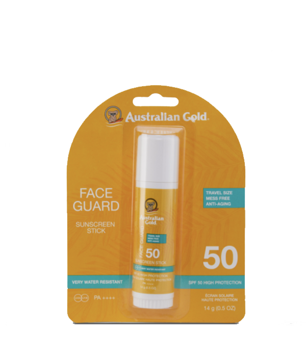 Australian Gold Face Guard Sunscreen Stick SPF50 è un pratico stick ideale per proteggere le zone delicate del viso da raggi UVA e UVB così come da vento, acqua e sudore grazie alla Formula Oil-Free. Non irrita gli occhi. Resiste alla sudorazione e all'acqua per 80 minuti.